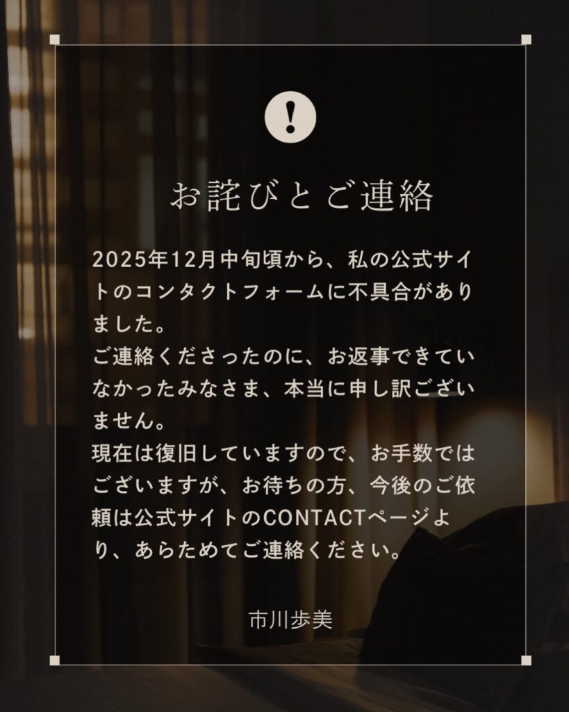 公式サイトCONTACT不具合(12月〜1月)お詫びとお願い