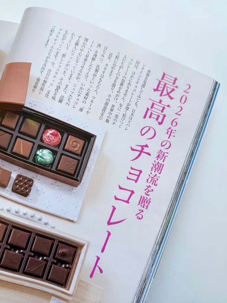 私はこの2月号のチョコレート特集を、お手伝いしています。日本のチョコレートブランドが丁寧に紹介されていて、その世界観や魅力が、家庭画報ならではの美しい写真とともに綴られています。この本の写真を眺めていると、チョコレートの質感も伝ってくるようです。