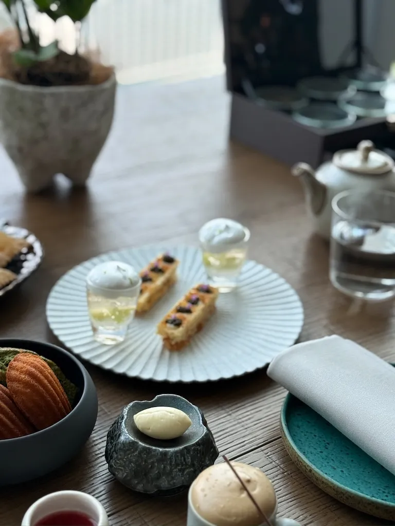 一皿ずつ提供されるコース仕立てで、全10種のスイーツと3種のセイボリーで構成されています。