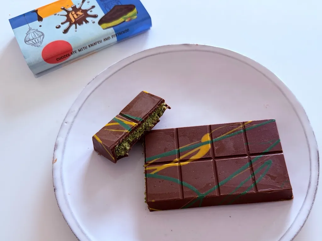ドバイで購入した元祖ドバイチョコ、FIX Dessert Chocolatierの「Can’t Get Knafeh of It」。日本では購入不可(市川歩美撮影)
