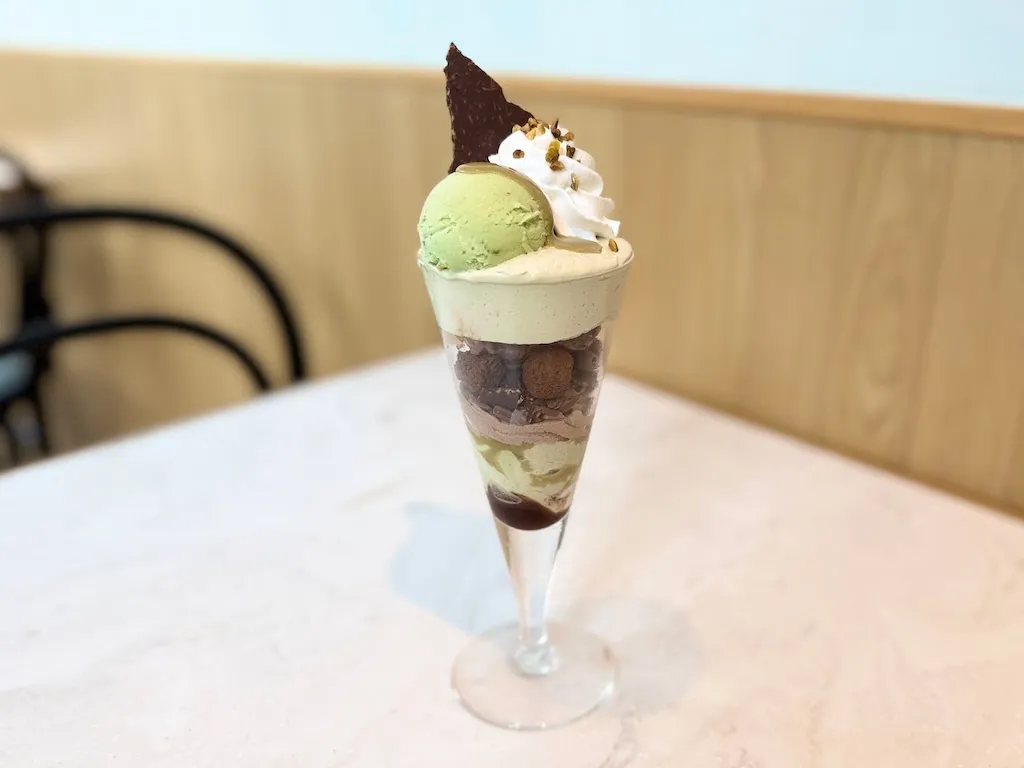 ゴディバカフェで2025年6月20日~8月26日まで販売された「ドバイチョコレート パフェ」(現在は終売)