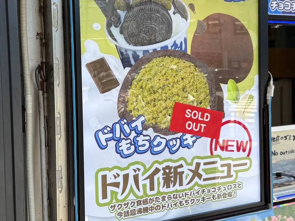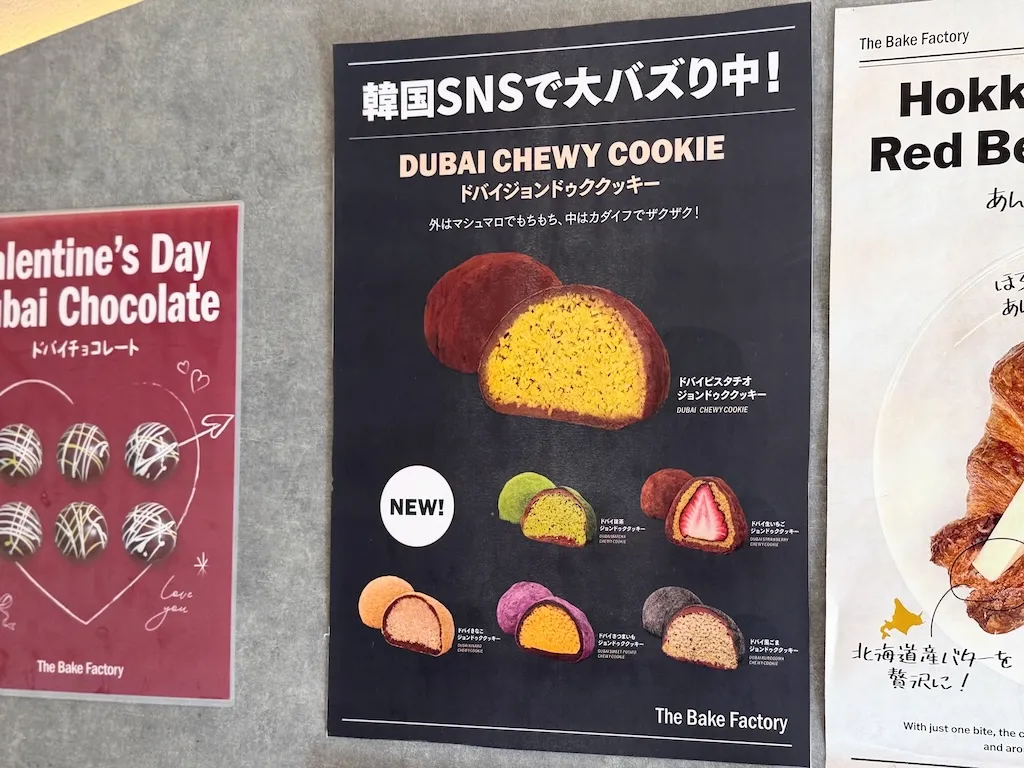 そして、2026年春。いま最も注目される動きは「ドバイもちクッキー」です。韓国発のトレンドで、新大久保を中心に爆発的な人気を集めています。