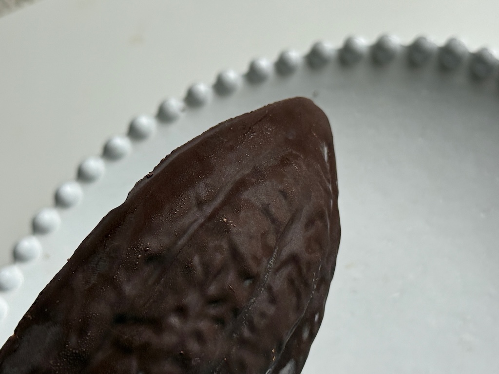 特に外側のチョコレートのシェルは、何度も調整を重ねました。少し厚みのあったチョコレートを少し薄くしてみるなど、細かな修正を繰り返して完成しました。