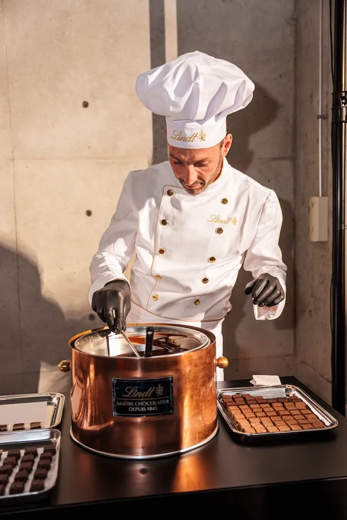 この「シグネチャープラリネ」を手がけたアルノー・ラゴ氏は、フランスで14年以上の経験を持つリンツのメートル・ショコラティエです。スイスのリンツの伝統をベースに、フランスのショコラティエによる手仕事を尊重し、加えて現代の感性を取り入れ、誰もが楽しめる味わいに仕上げています。このすべてを両立させているのです。ひと粒ごとに香りや食感、甘みのバランスを計算し、繊細なプラリネを完成させました。