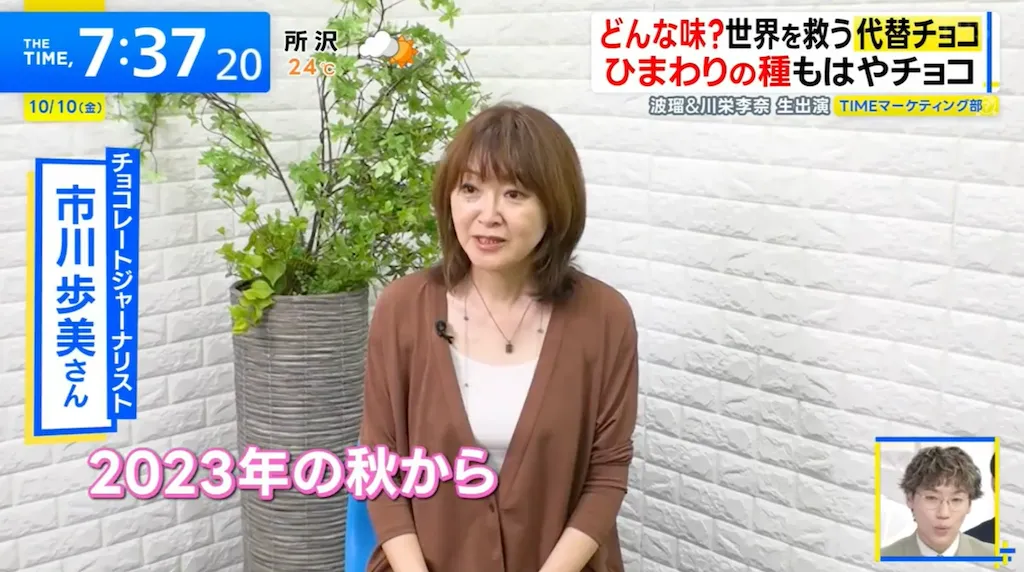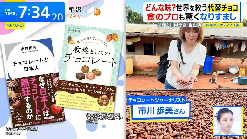こんにちは。チョコレートを主なテーマに掲げる、ジャーナリストの市川歩美です。10月10日のTBSテレビ「THE TIME,」で、代替チョコレートを特集。市川歩美が解説しました。ご覧くださった全国のみなさん、ありがとうございました!